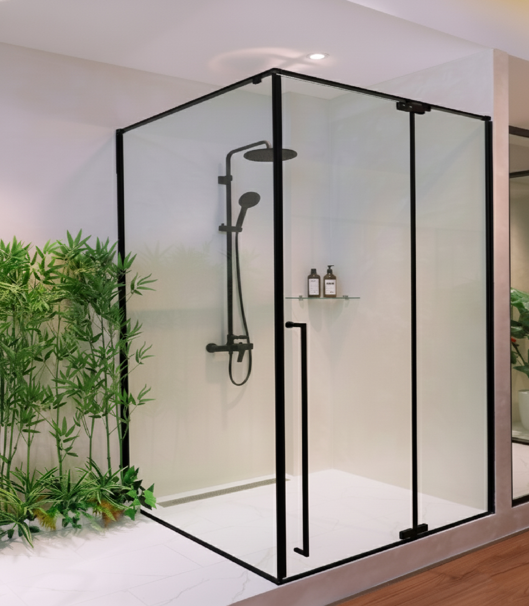 Thiết kế kính cao giúp phòng tắm trông rộng rãi, gọn gàng và liền mạch hơn, phù hợp với nhiều phong cách kiến trúc khác nhau.