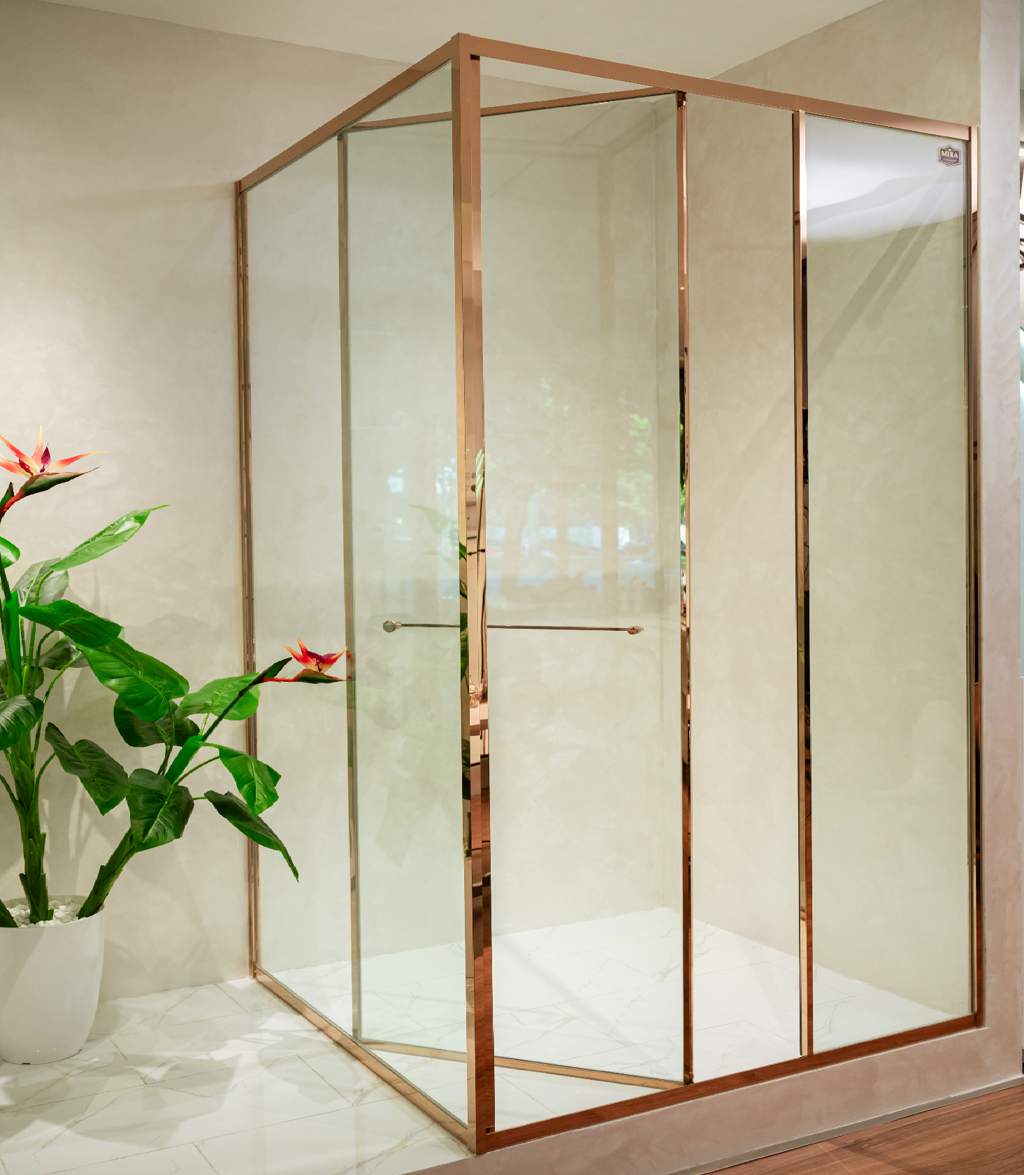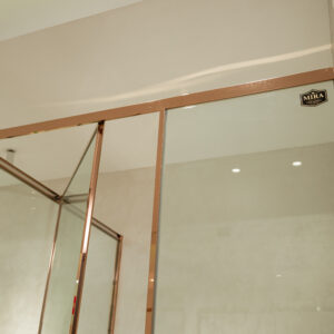 Khung inox và phụ kiện của phòng tắm kính cửa trượt MSG-1×3 được mạ PVD giúp chống ăn mòn, hạn chế trầy xước và giữ màu sắc sang trọng trong môi trường ẩm ướt.